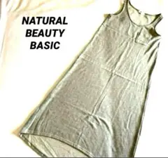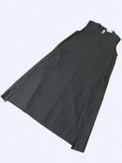 リブ編みのノースリーブロングワンピース、シンプルで着回しやすいグレー。