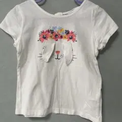 ユニコーンと女の子のイラストが施されたホワイトTシャツ。