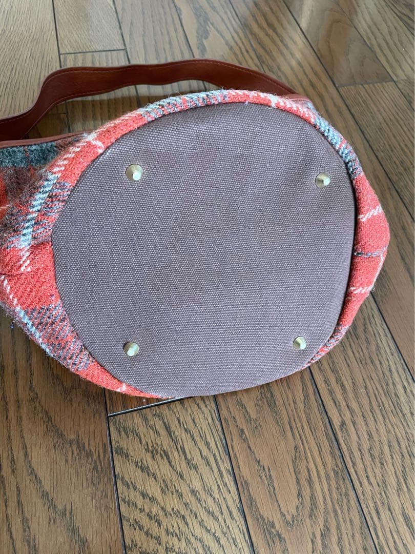 ウール素材のオレンジ系チェック柄トートバッグです。