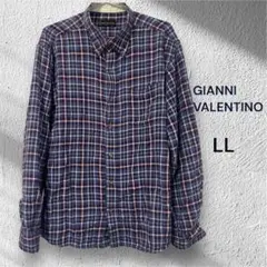 チェック柄の赤・青・白の長袖シャツ、サイズLL。