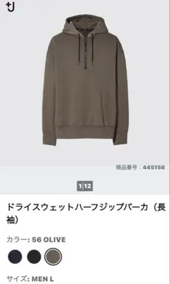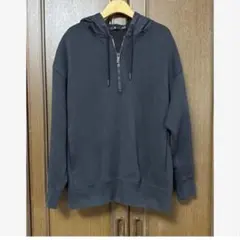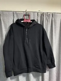 UNIQLO +Jのブラックハーフジップフーディー、メンズXSで、レディースだとMくらいです。フードの部分だけ異素材です。