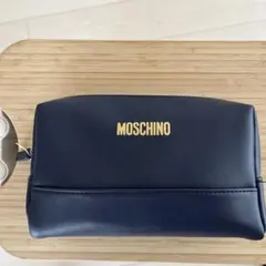 ブラックのタオル生地に赤い花柄のMOSCHINO巾着になります。