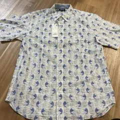 ● 虎顔やロゴマークを配し、カラフルな柄が目を引く半袖シャツ。