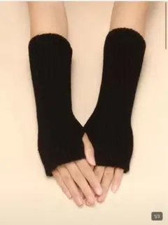 女性用無地ウォームニット指なし手袋1/2