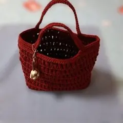 赤い編み物のバッグ手...