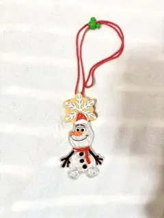 オラフのデザインが特徴的なストラップ、約5cmのサイズで持ち運びに便利。