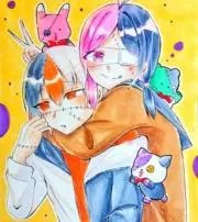 原画 オリジナルイラスト 手描き アナログ コピック ハガキサイズ