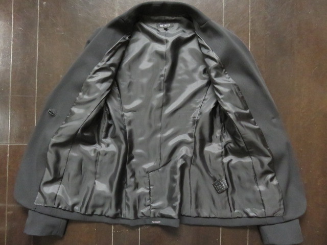 【BLACK by MOUSSY】ブラック バイ マウジーの高級ジャケット、お色は黒、うっすらストライプです。