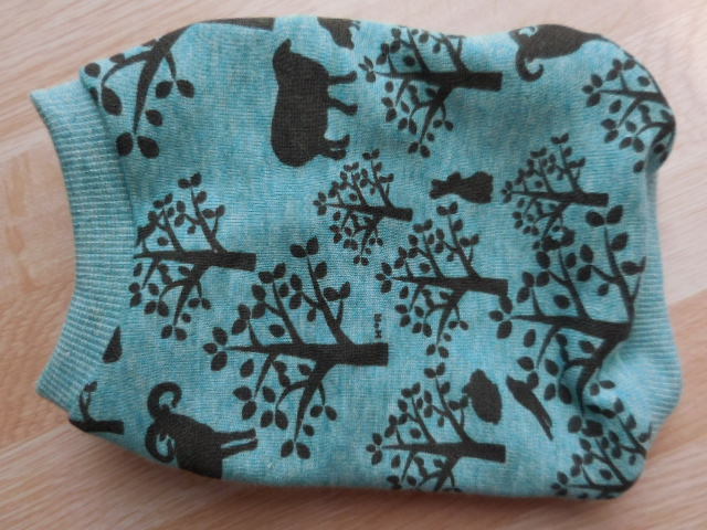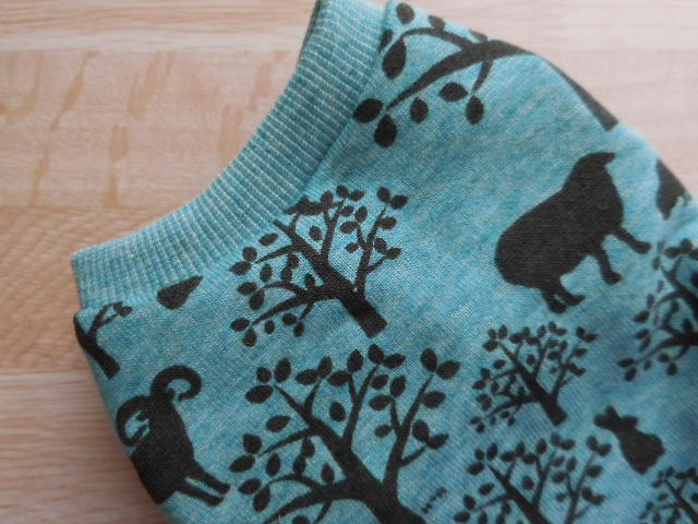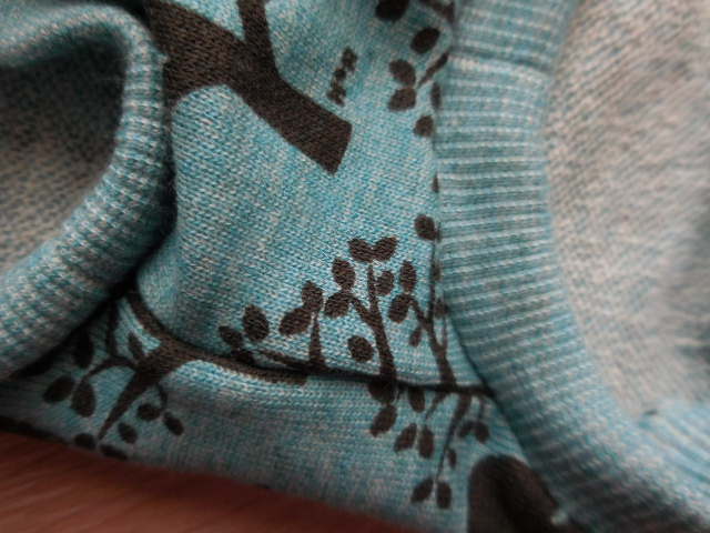 家庭用ミシンで作っているため、ニットの毛羽立ちがあります。