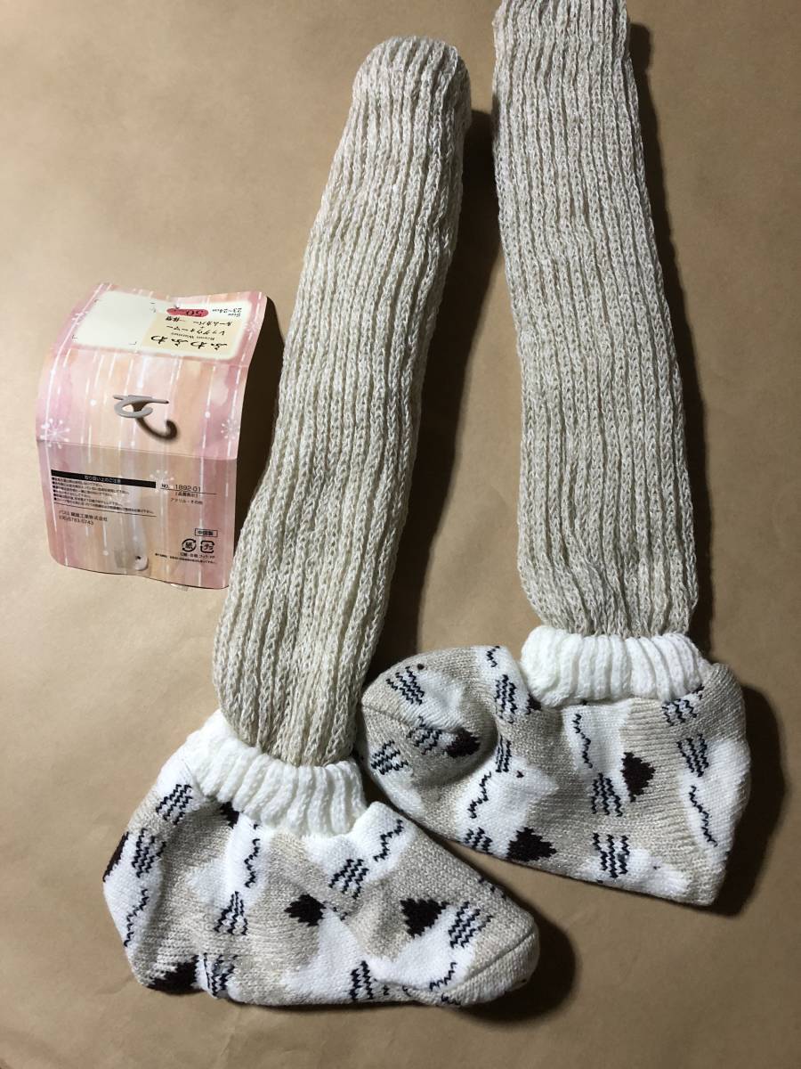 【同梱不可!】  ふわふわ レッグウォーマー+ルームカバー 一体型 ネコ柄★ 23~。24cm 50cm丈 ★ルームウォーマー