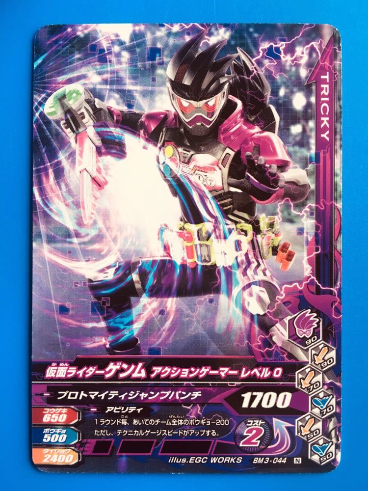 仮面ライダー、ガンバライジング・第BM3弾からNo.044《仮面ライダーゲンム・アクションゲーマーレベル0》の登場です。発送は、普通郵便を利用します。(特にご希望のない場合)おとりまとめも可能ですが、送料に変動する場合がございます。また、送料のご請求は、自宅での計量を基準にご請求させていただいておりますので、実際の金額と差異が出る場合もございます。予めご了承ください。他にも多数出品中です。まとめてこの機会にいかがでしょうか?ご質問お待ちしております。