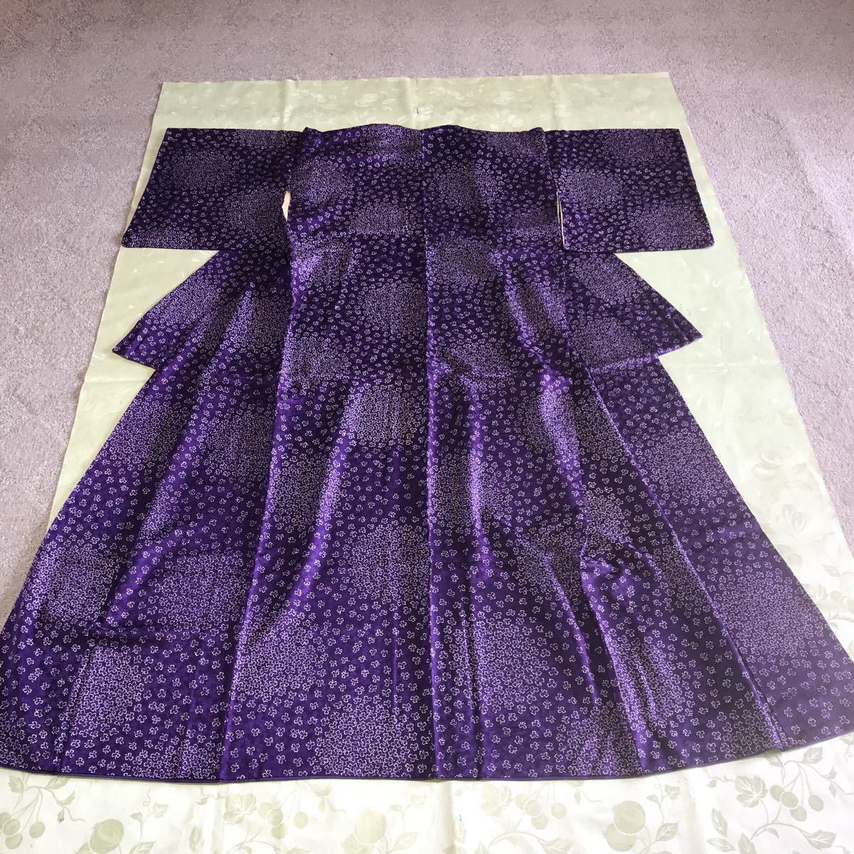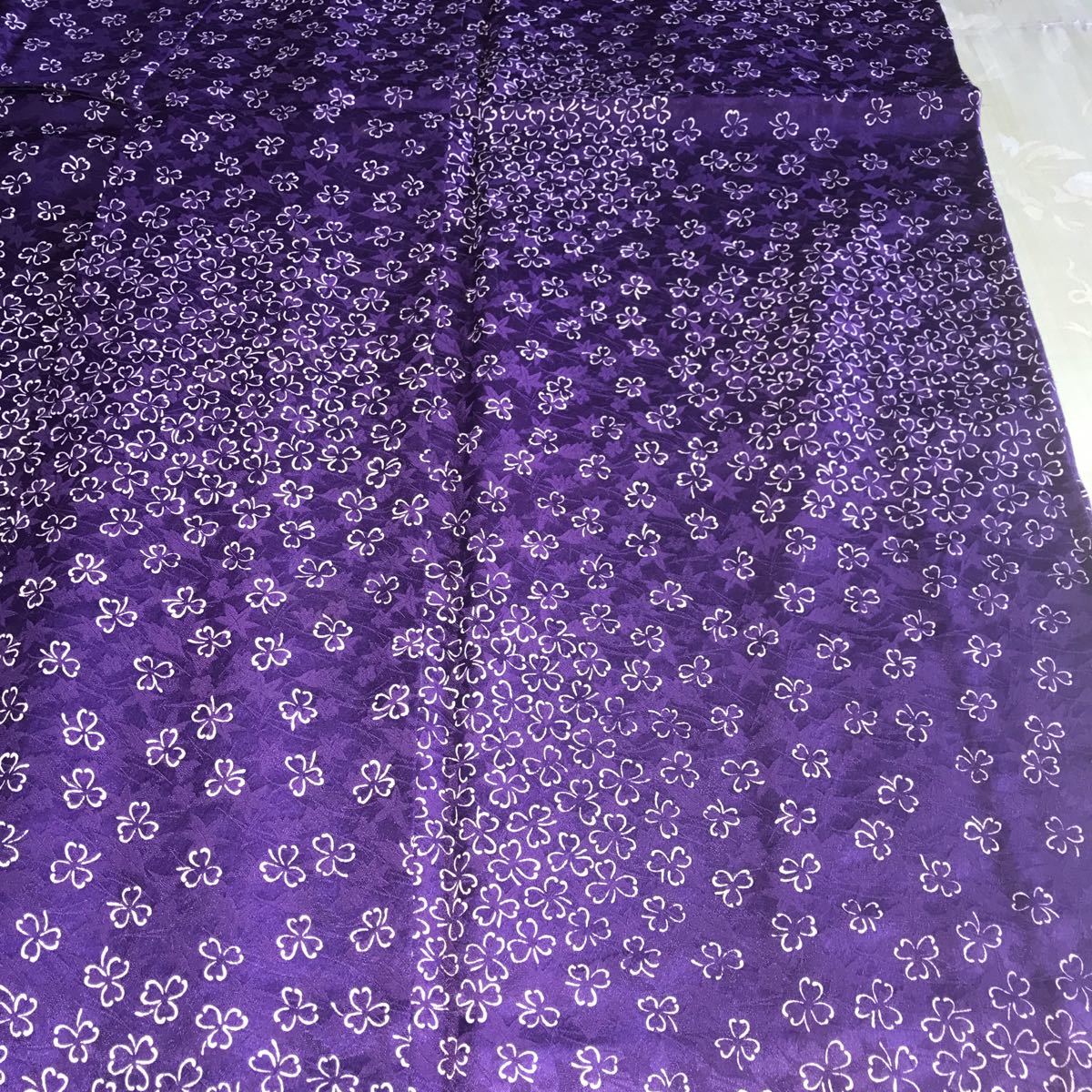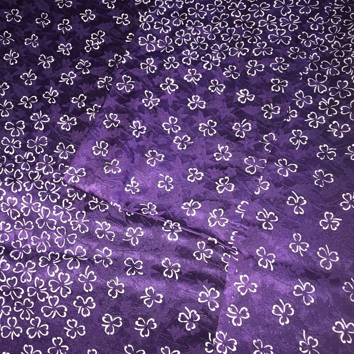 ・女性用 着物 絹?ポリエステル?紺紫地 白の細かい三つ葉模様