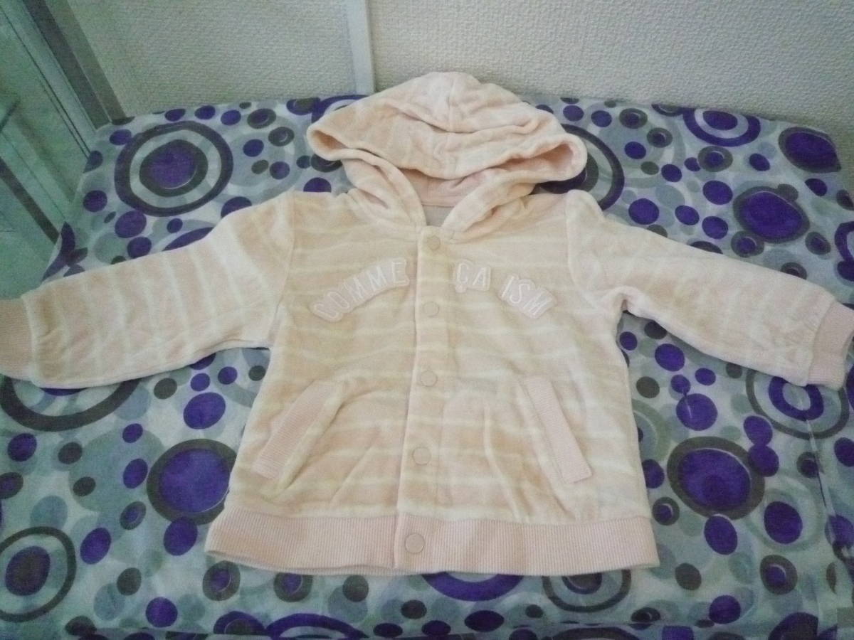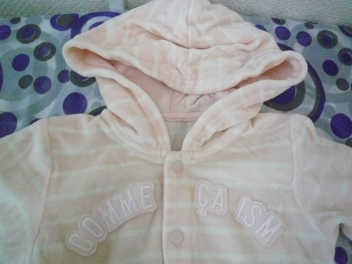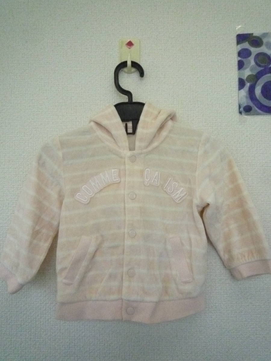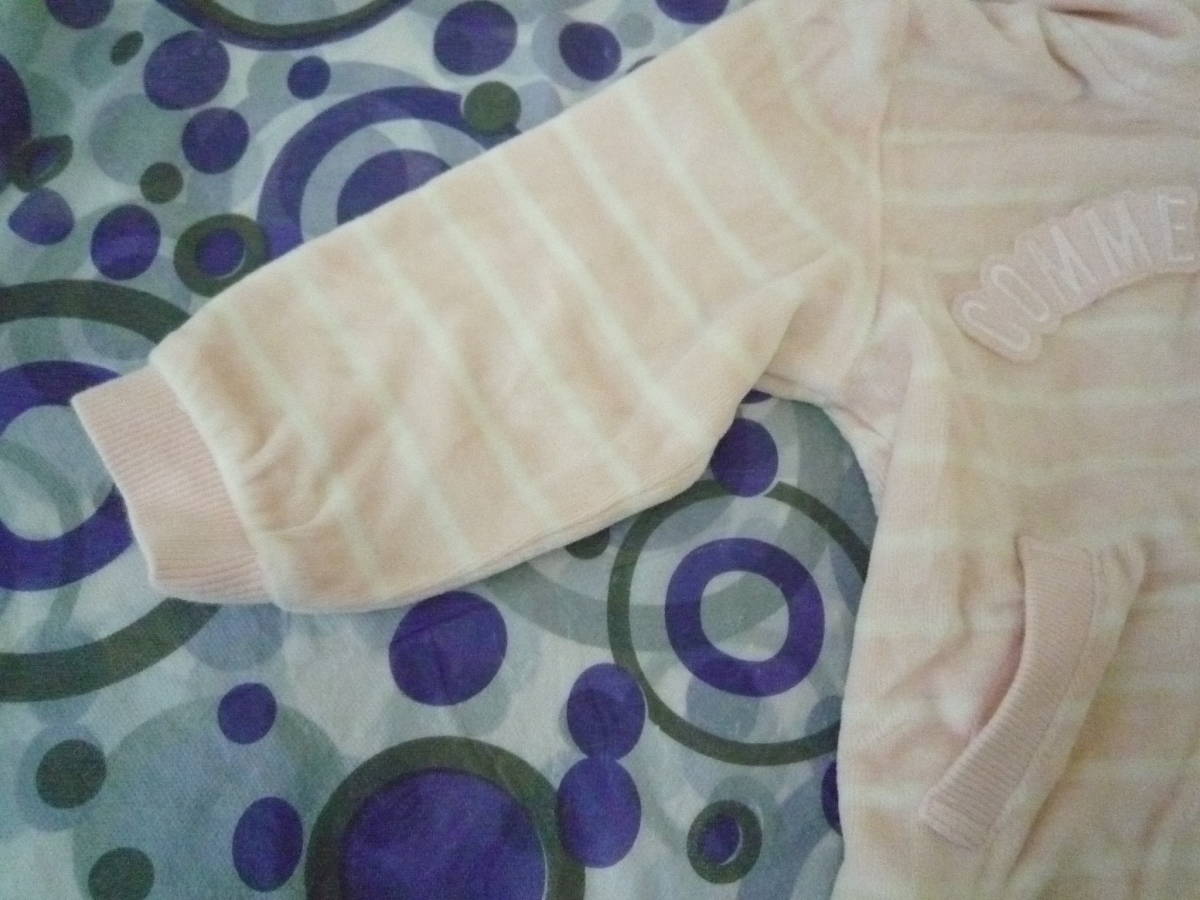 ★コムサイズム ベビー女の子パーカー フード付き長袖ジャケット ボーダー柔らかパイル地 薄ピンク(80)
