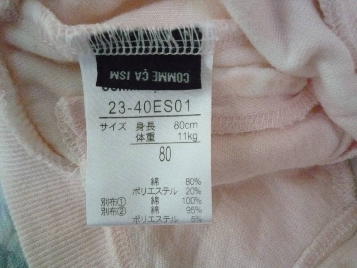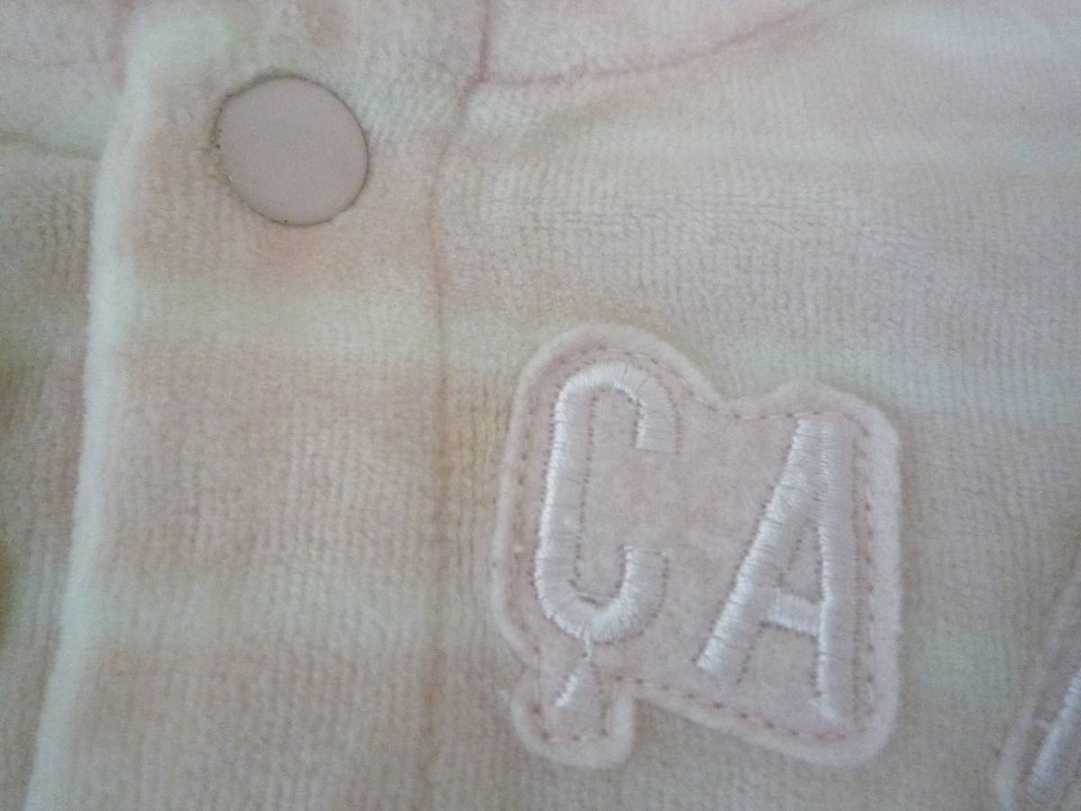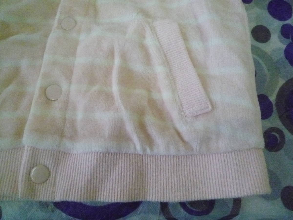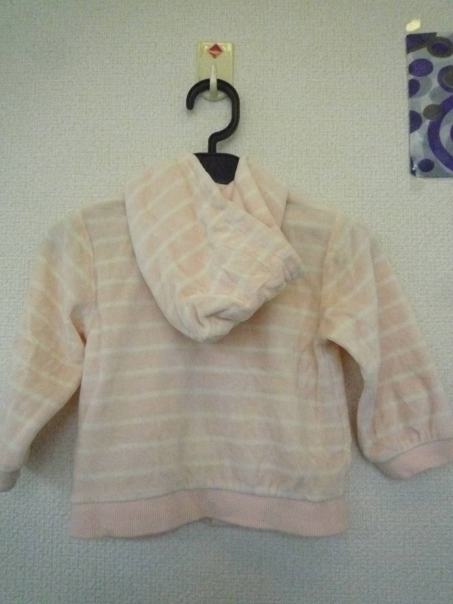 ★コムサイズム ベビー女の子パーカー フード付き長袖ジャケット ボーダー柔らかパイル地 薄ピンク(80)