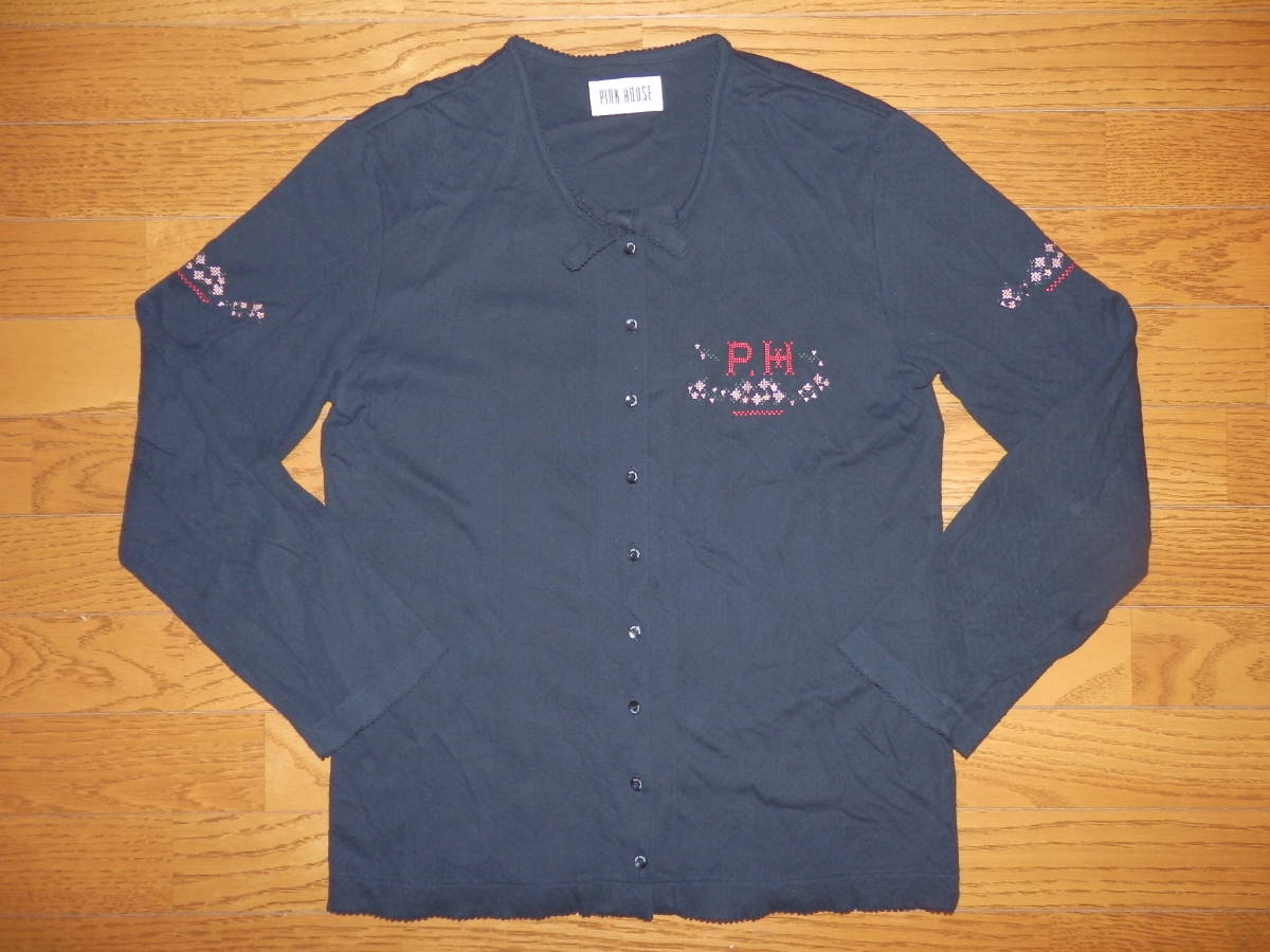 | USED品★PINK HOUSE ピンクハウス リボン付き カーディガン L 日本製 ブラック | |||