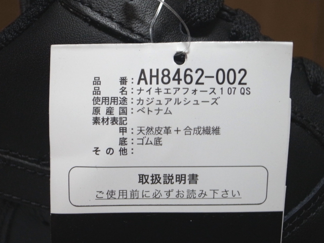 18年製 NIKE AIR FORCE 1 QS SWOOSH PACK ナイキ エアフォース スウォッシュ パック AF1【AH8462-002】ブラックレザー 黒 US11