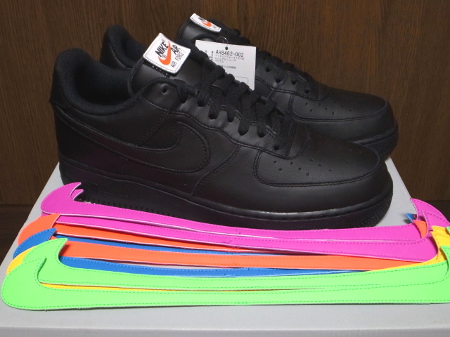 ナイキジャパンの黒タグと替えのスウォッシュ【赤、黄、青、紫、緑】が付属します。