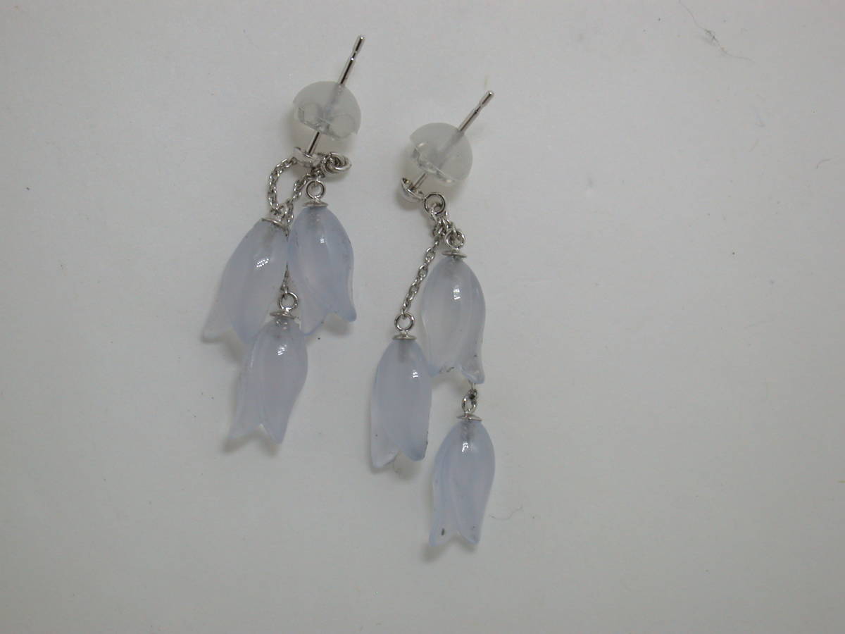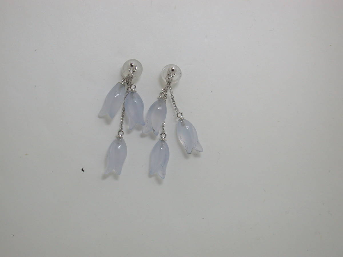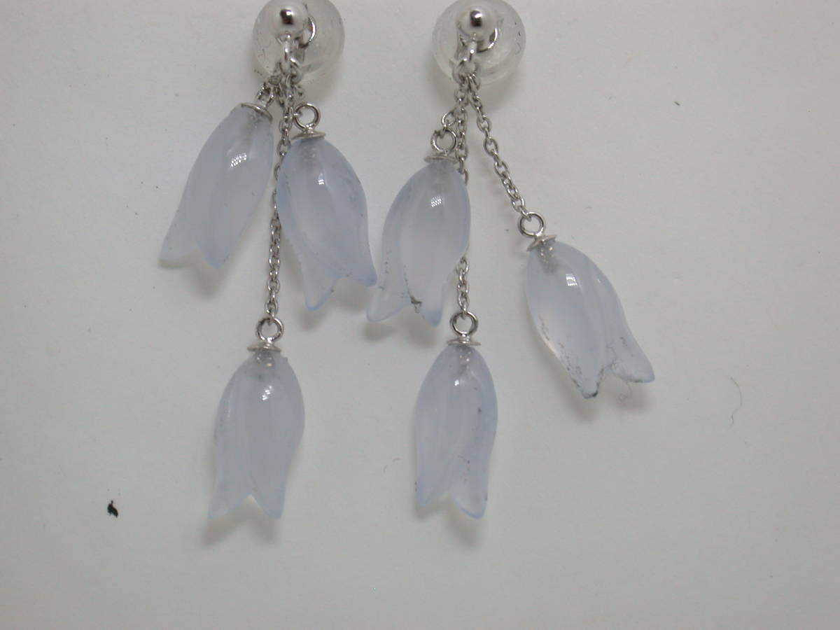 説明 | k18wg花のカルセドニー3個の下がるピアスです。 |