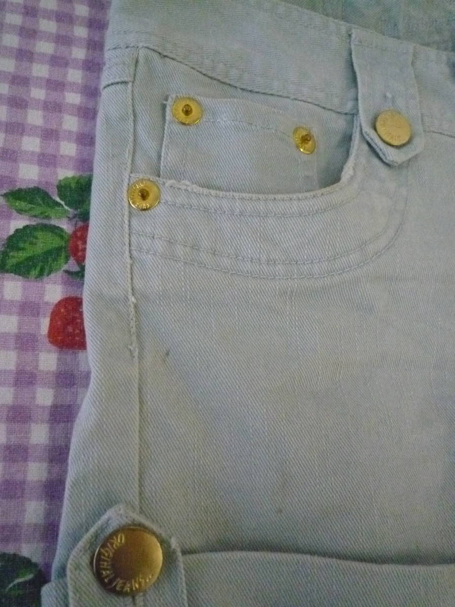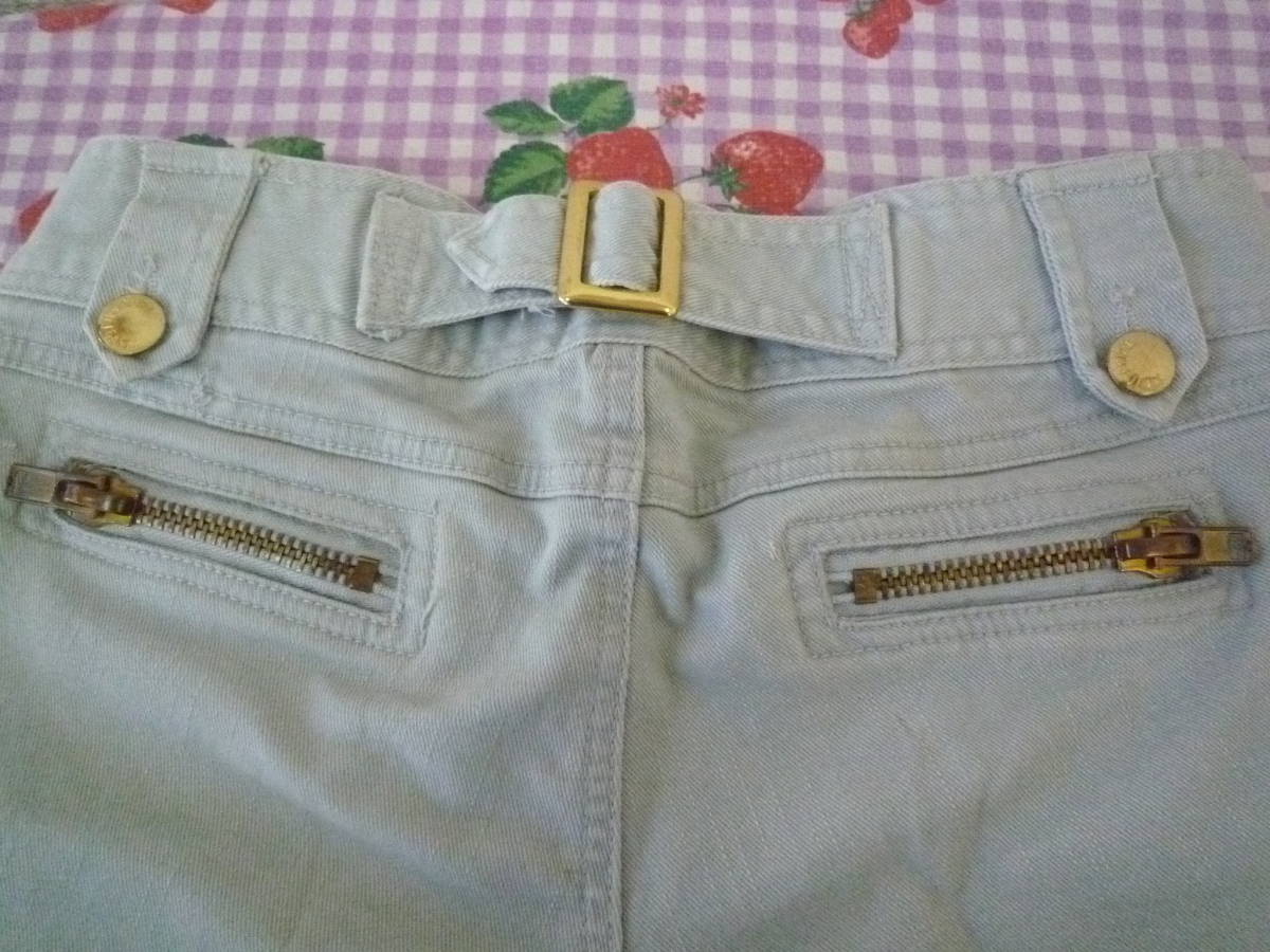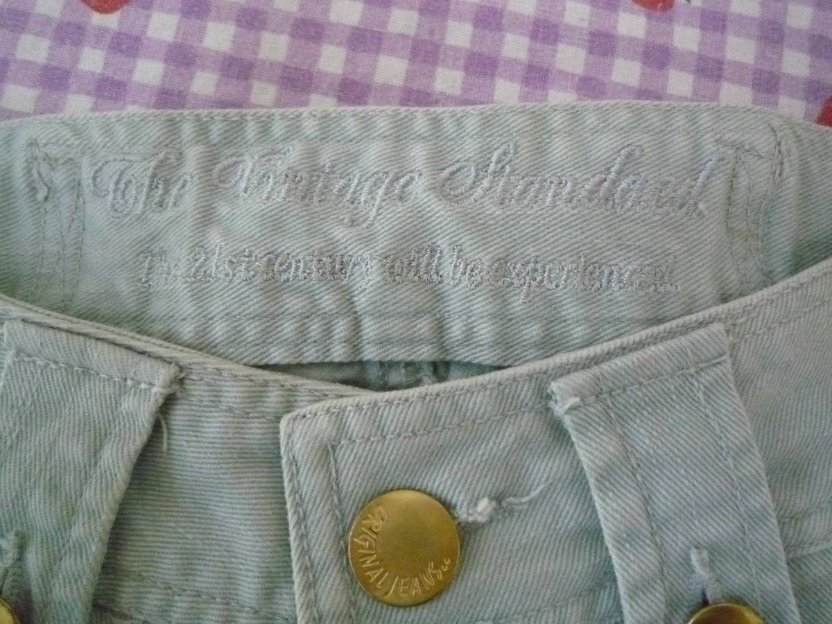 ★ The Vintage Standard Original Jeans デニム ショーパン 裾ダブル ボタン 後ろベルトバックル ファスナーポケット うすい水色 W61
