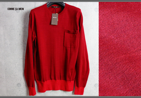 新品コムサメン秋冬 上質ウール ニット ハイゲージ セーターM赤 定価1.4万円/COMME CA MEN
