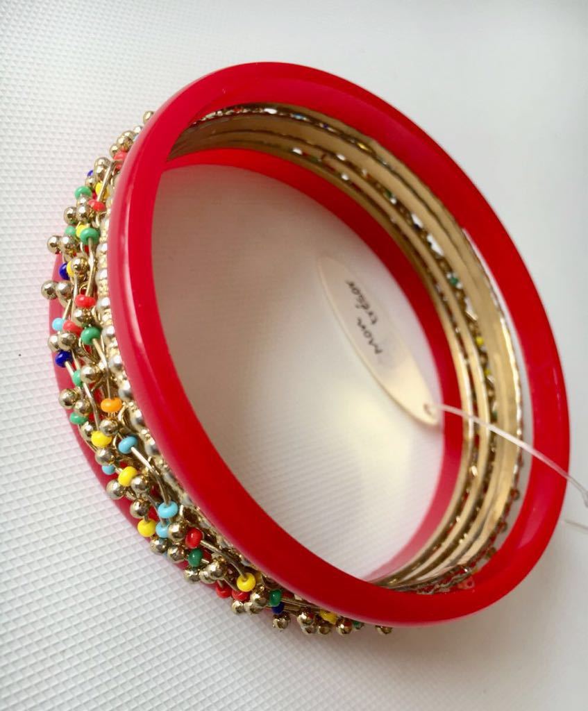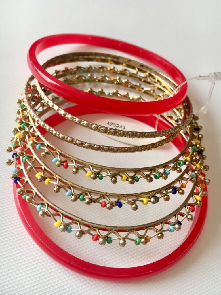こちらは、Mon tresor レッド×ゴールド ビーズ7連ブレスレットになります♪