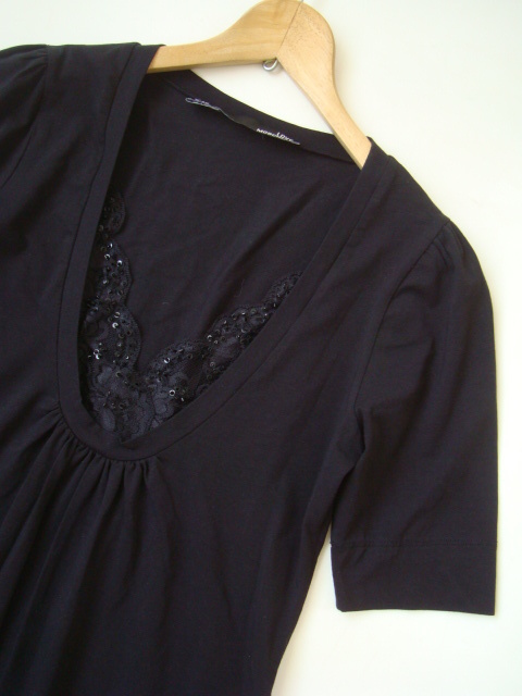 ・上質なカットソー系生地を使用し計算された綺麗なバランス、美しいシルエットにレースとビーズの胸元デザインがとてもお洒落なワンピースです♪♪