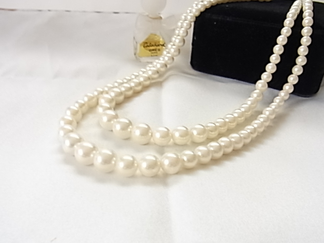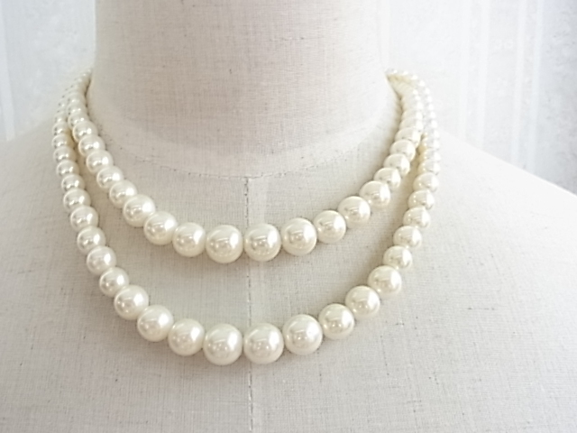 プラスチックパール 大中小のグラデーションの玉 パーティーにも素敵な2連ネックレス☆