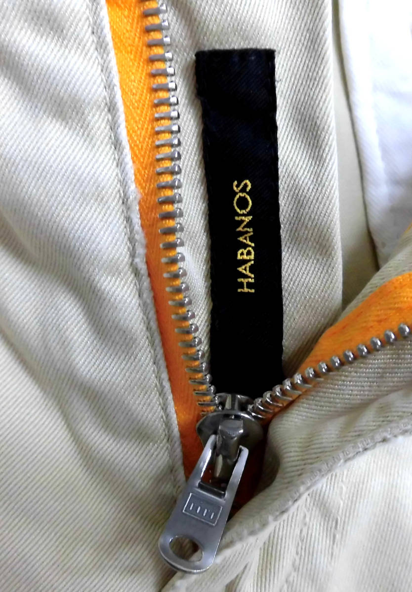 フロントはririジップ仕様の色はベージュで、履いた際のシルエットが綺麗なハバノスらしい一本です。