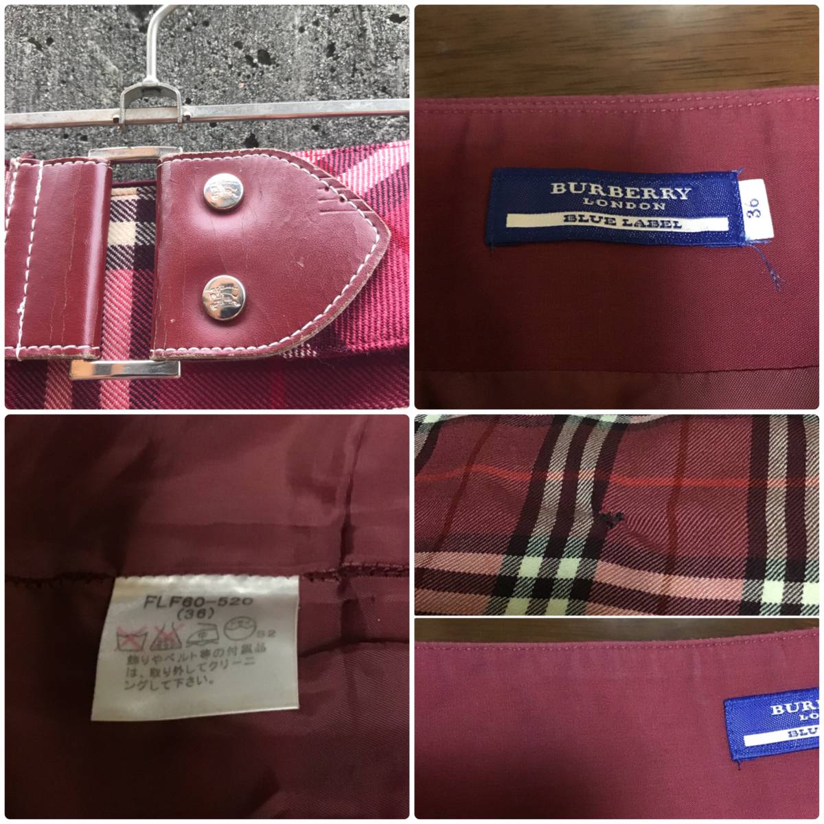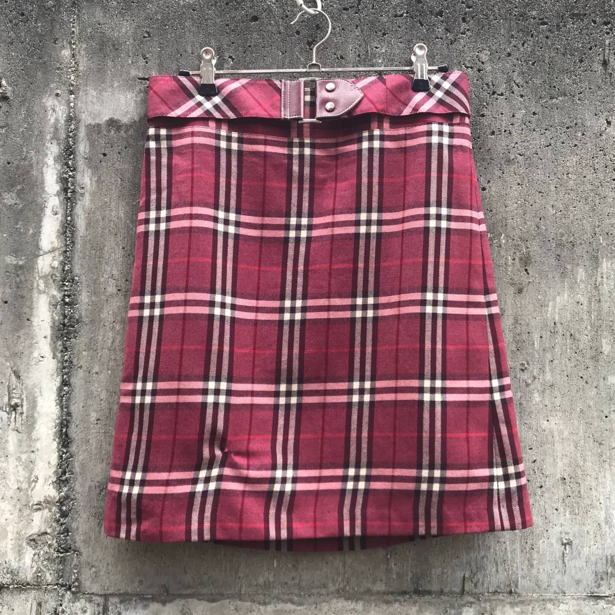 バーバリーブルーレーベル チェック柄ベルト付きデザインスカート36/タイト系