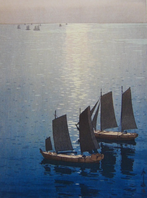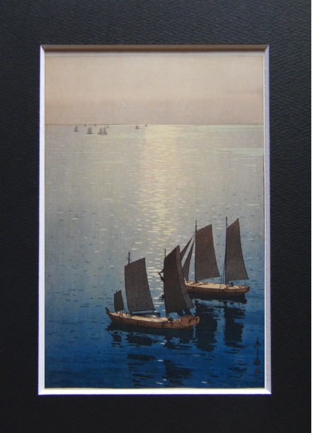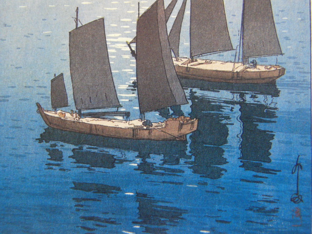 吉田博、【光る海 瀬戸内】、希少画集画、高級新品額・額装付、状態美麗、送料無料