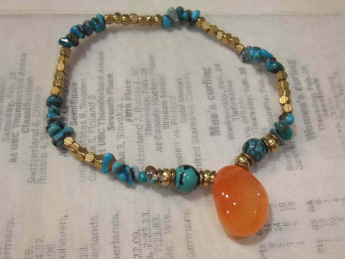 アメリカ産本ターコイズさざれとファイヤーアゲート等ブレス☆本トルコ石本ターコイズ(丸珠はスパイダーウェブのも)ブレスレット♪☆72②