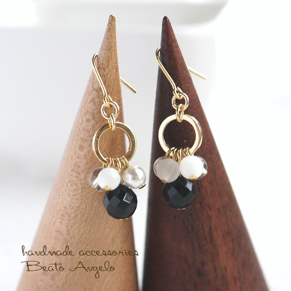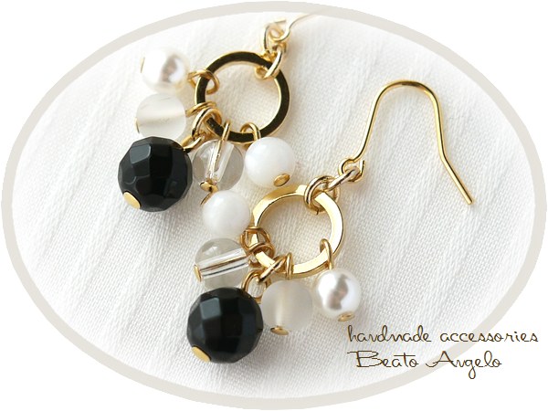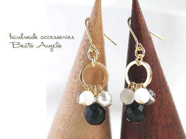 ◇◇+angelo+天然石ブラックオニキスとクリスタルのリングピアス(p-091)G マザーオブパール チタン 樹脂 イヤリング