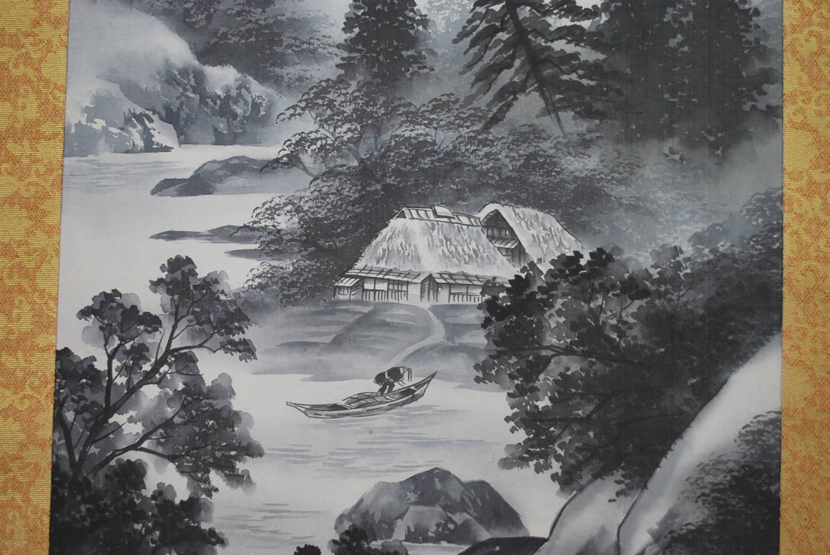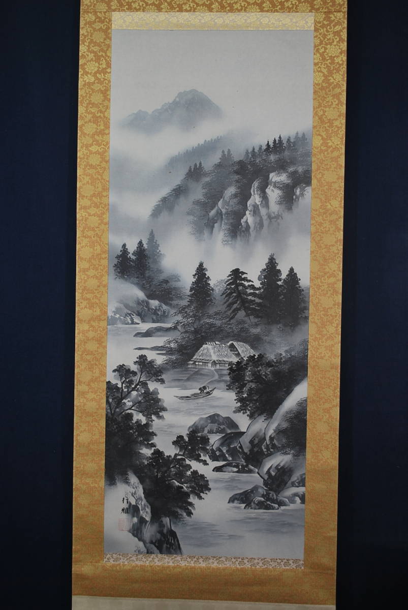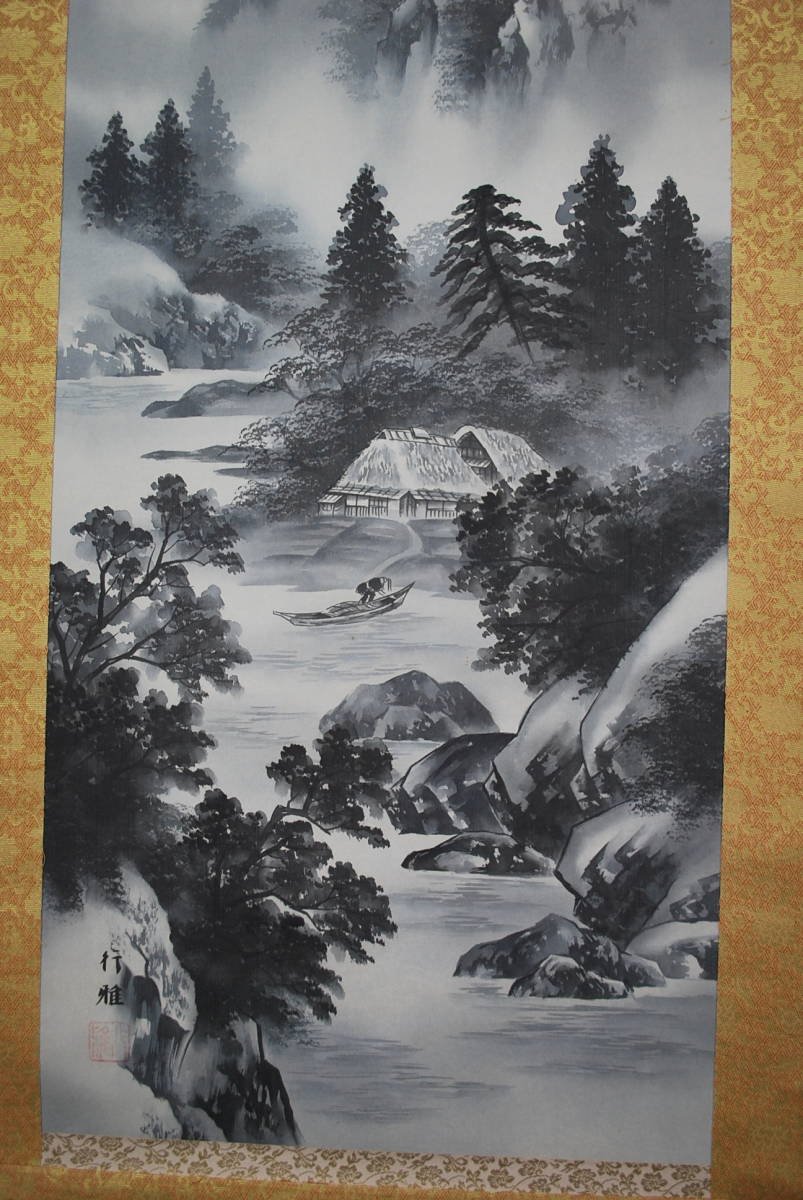 真作/太田行雅/山水図//掛軸☆宝船☆P-389 J