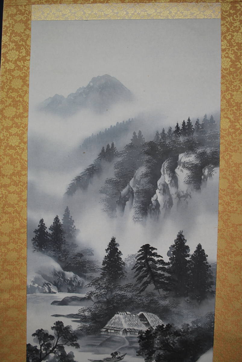 真作/太田行雅/山水図//掛軸☆宝船☆P-389 J