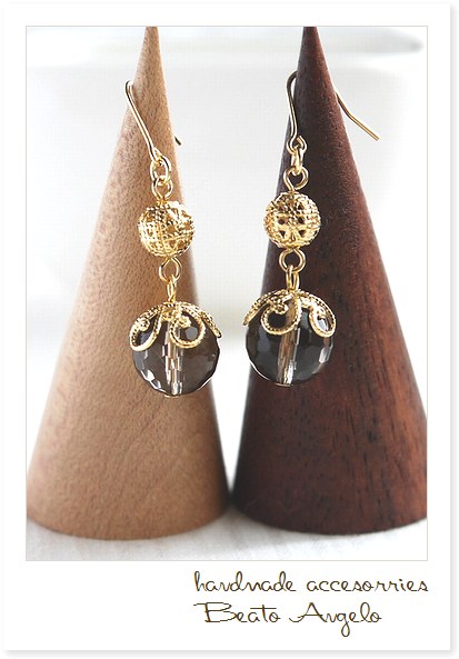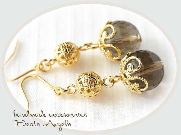 天然石スモーキークォーツと透かし玉のピアス(p-293)G