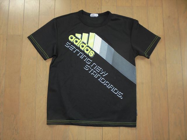 商品説明 アディダス★黒×黄緑ロゴのサッカー半袖シャツ★130
