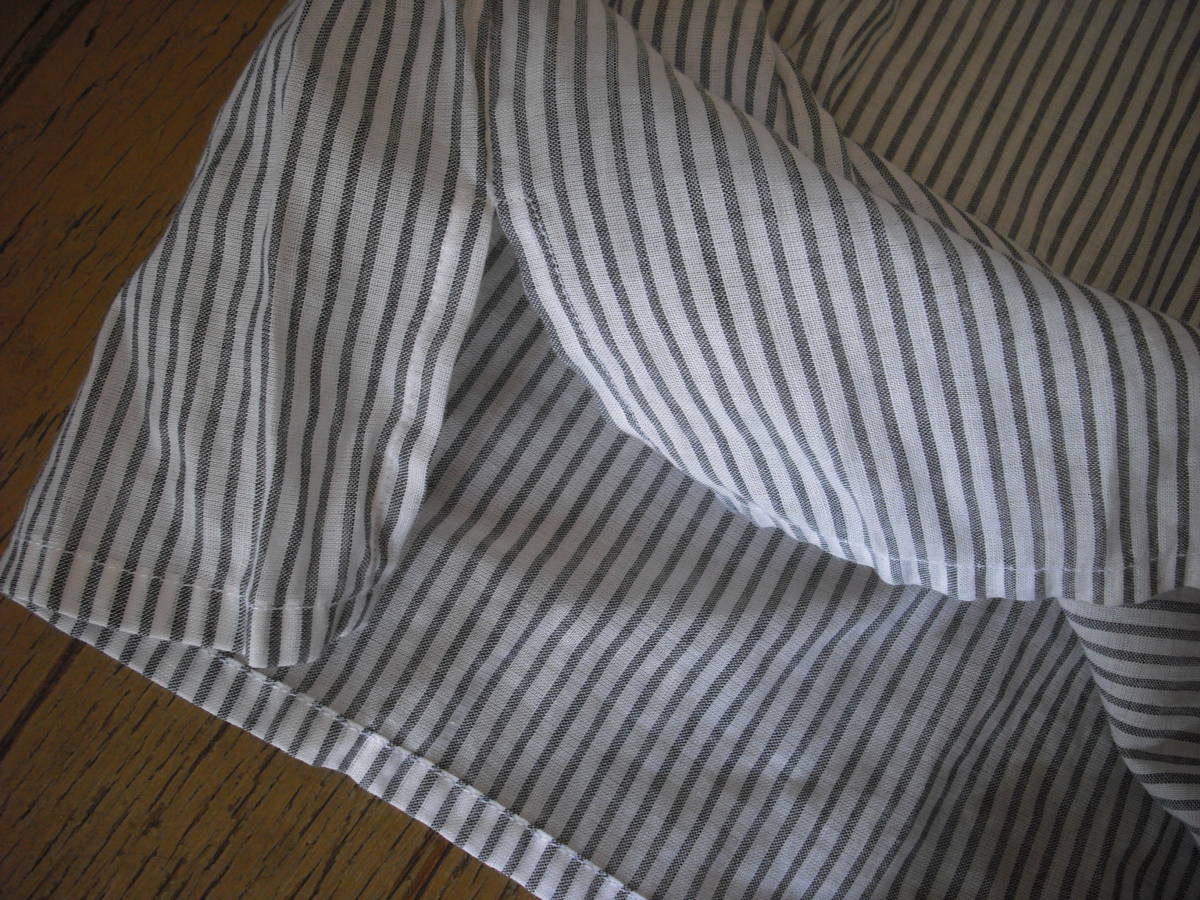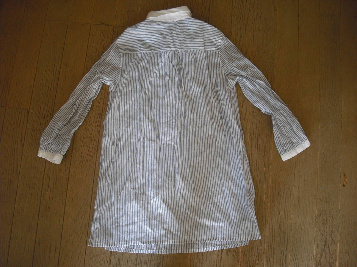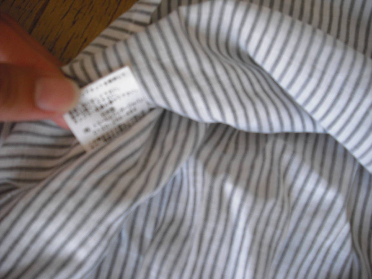 写真のようなシャツになります。 124-114401-240 サイズはS 麻56% 綿44% その他:綿100% (株)トミーヒルフィガージャパン 日本製 おおまかですが・・・着丈68cm、身幅40cm、袖丈44cmくらいです。 写真の状態でメジャーで測っています。 私見ですが…お色はホワイトにグレーっぽいです。 襟部分はホワイトです。 保管中の汚れ、畳みジワ、経年劣化、他商品と触れあっているため糸クズの付着などございますし、中古であり、個人所有になりますので糸のほつれ、汚れやスレなどの痛みがある場合もございます。 現状でよろしくお願いします。 約113g 簡易包装の規格内の定形外郵便150gかレターパックライトで発送予定です。 |