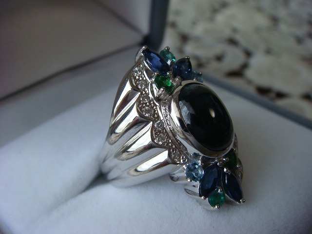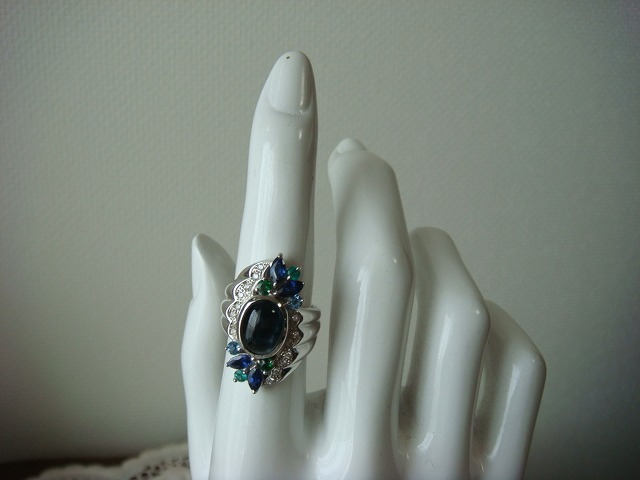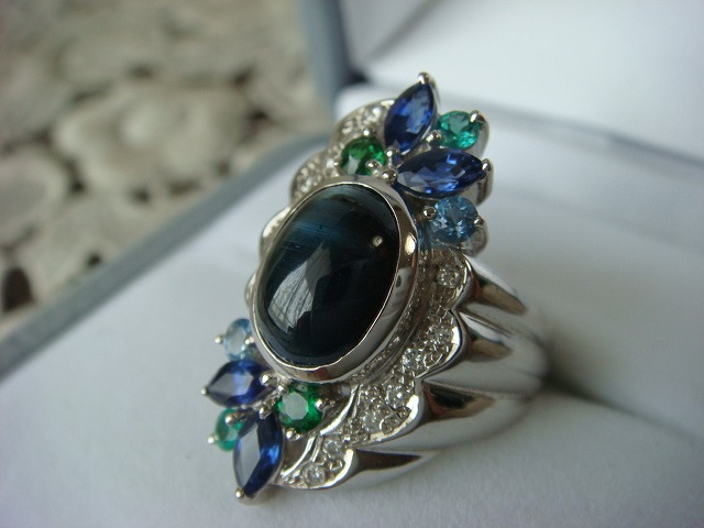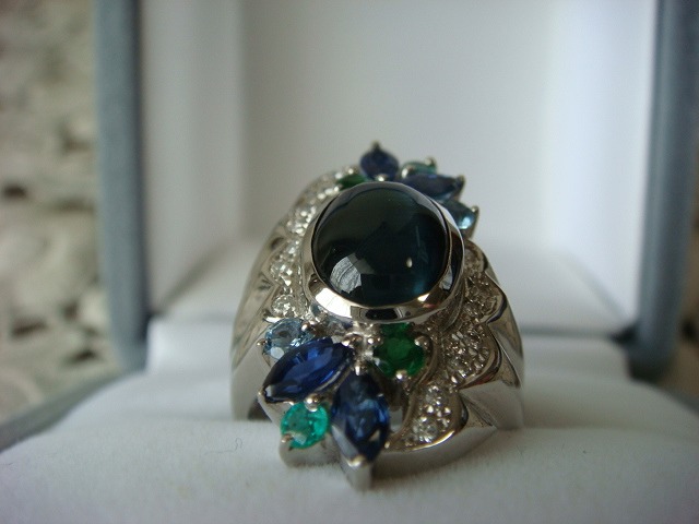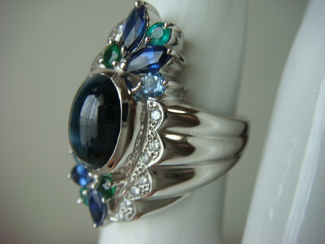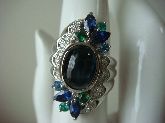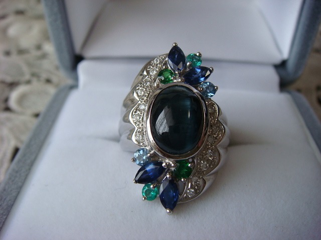 とても豪華なトルマリンキャッツアイリングです。サイズは約11です。プラチナ製です。