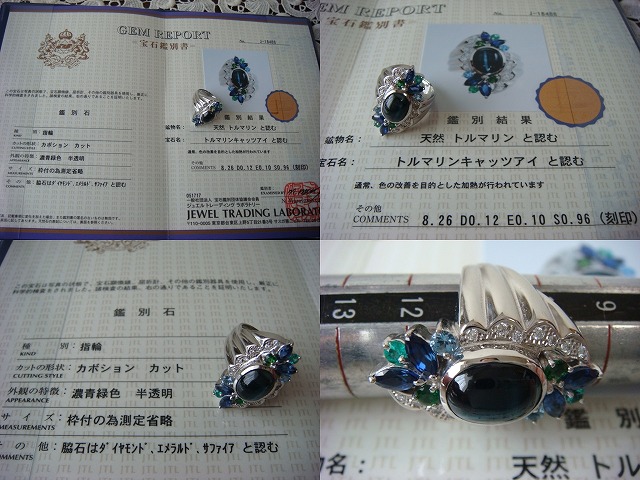 ◎豪華!トルマリンキャッツアイ ダイヤ エメラルドリング 鑑別書付き◎