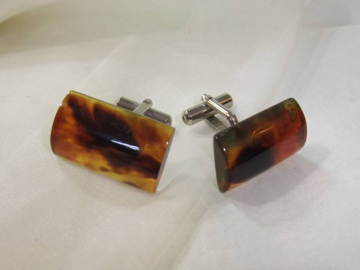 画像の、経年感すら良い感じのカフスボタン、フレンチアンティークな感じが人気の使いやすいべっこうタイプ鼈甲調や鼈甲タイプ張りのカフスボタンです☆古くて、経年感などあるものもありですが、古いものはかえって着こなれた感じを演出できます♪ユーロや日本のデパート・メンズのセレクトショップ辺りで昔購入したお品で、お色もシックで服に合わせやすいタイプです☆このシリーズはusedが多いですがお薦めです♪