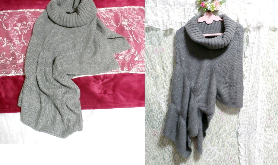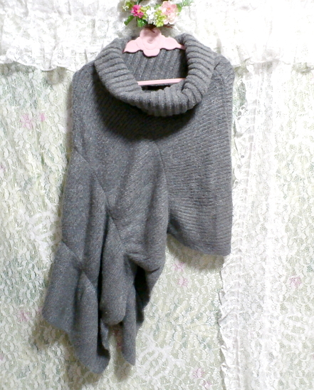 灰色グレーちょっと変わった形のセーターニット風ポンチョケープ Gray little unusual shape sweater knit style poncho cape