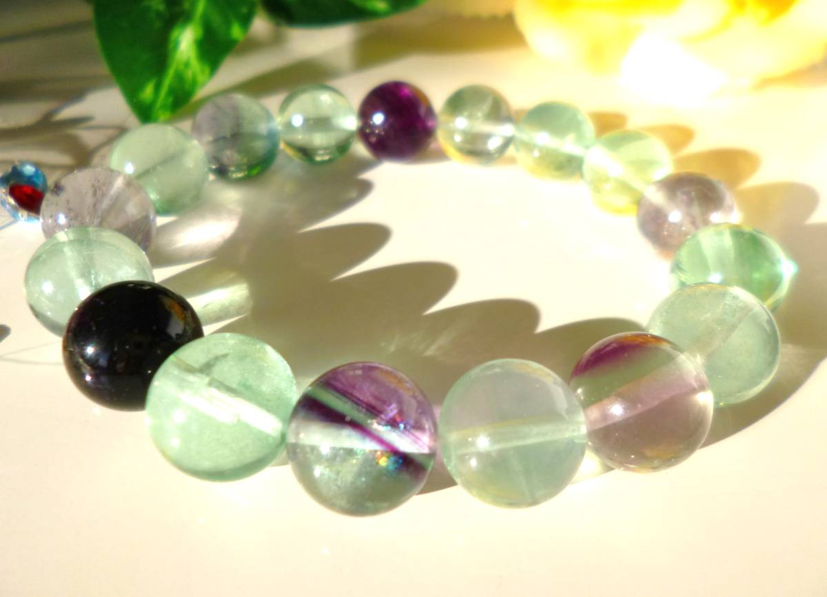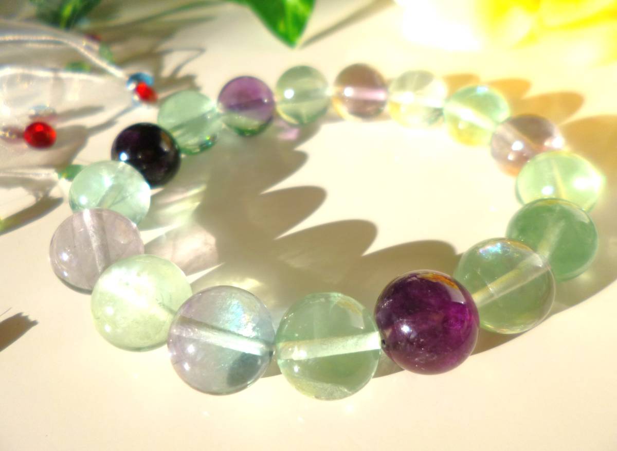 ☆1点もの☆心のリラクゼーション☆ストレス解消☆天才の石☆レインボー☆マルチカラーフローライト☆ ☆大珠12mm☆ ☆17cm☆