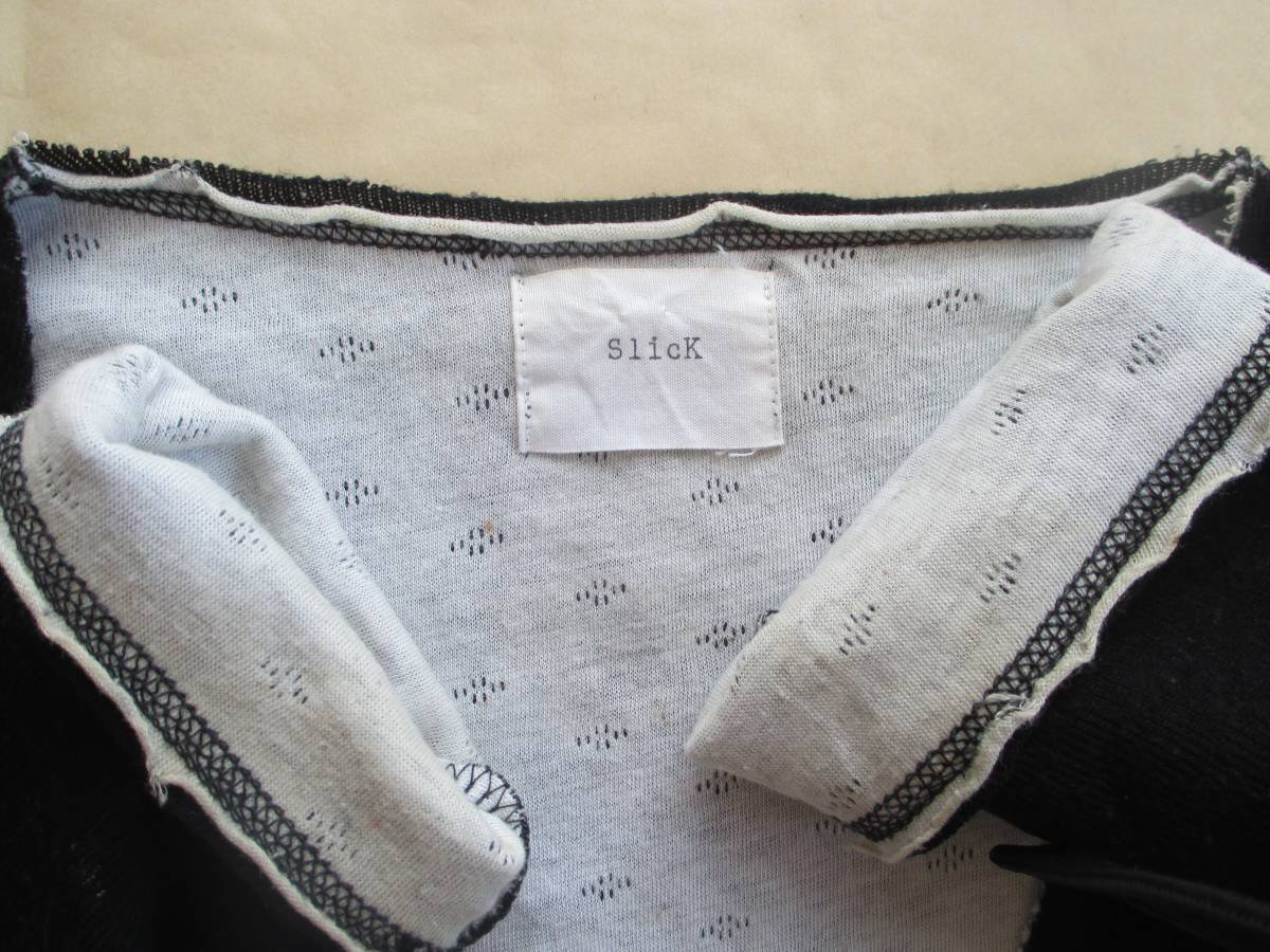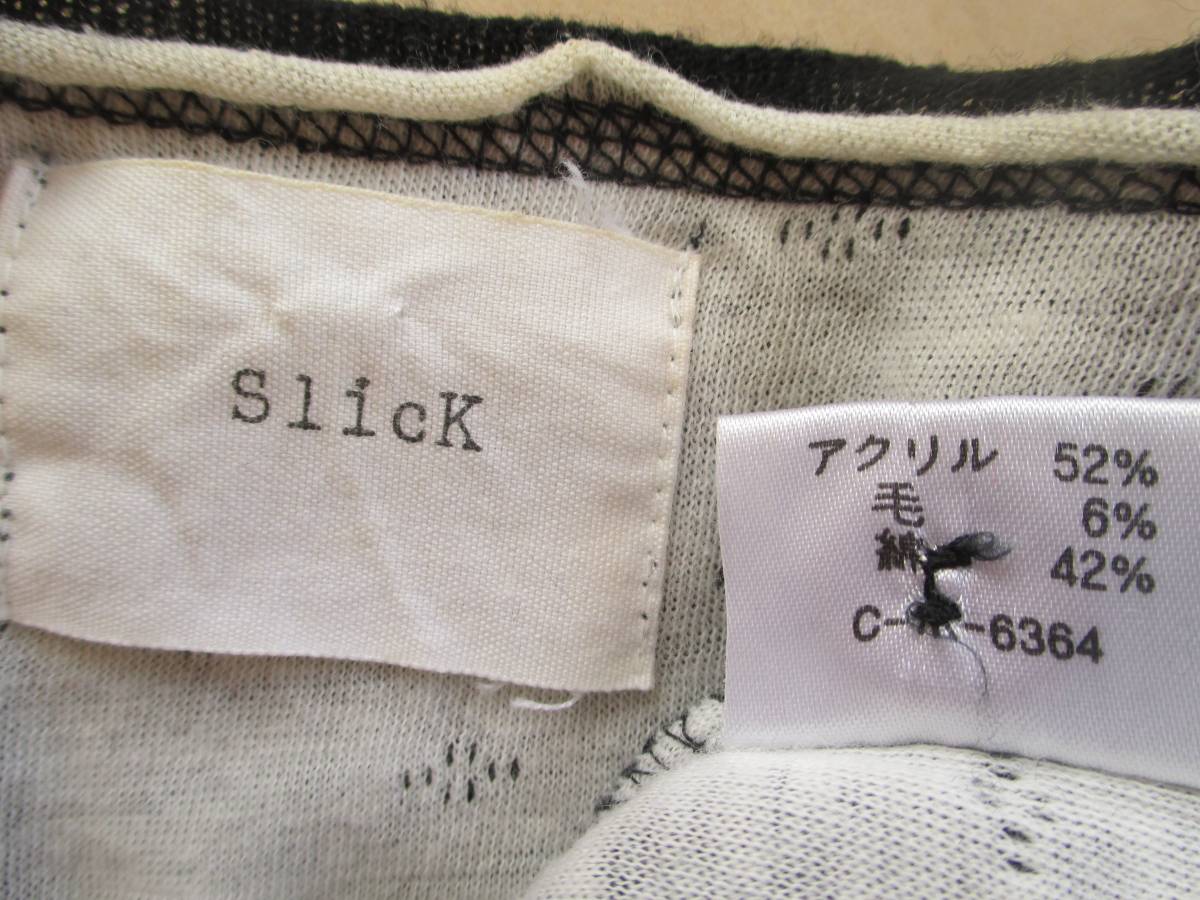 SLICK 長袖 切りっぱなし デザイン ロング ニット カーディガン 黒 S M スリック セーター ブラック
