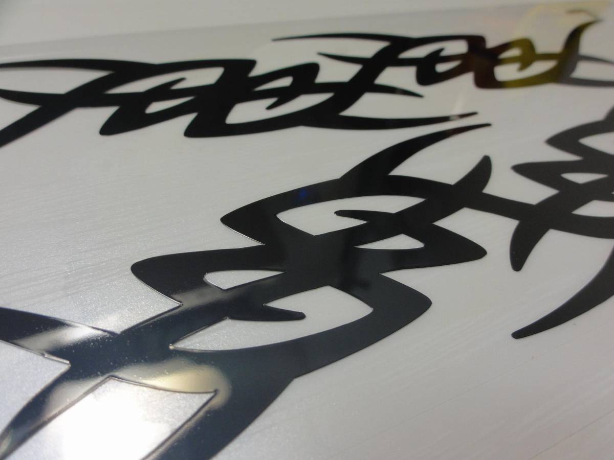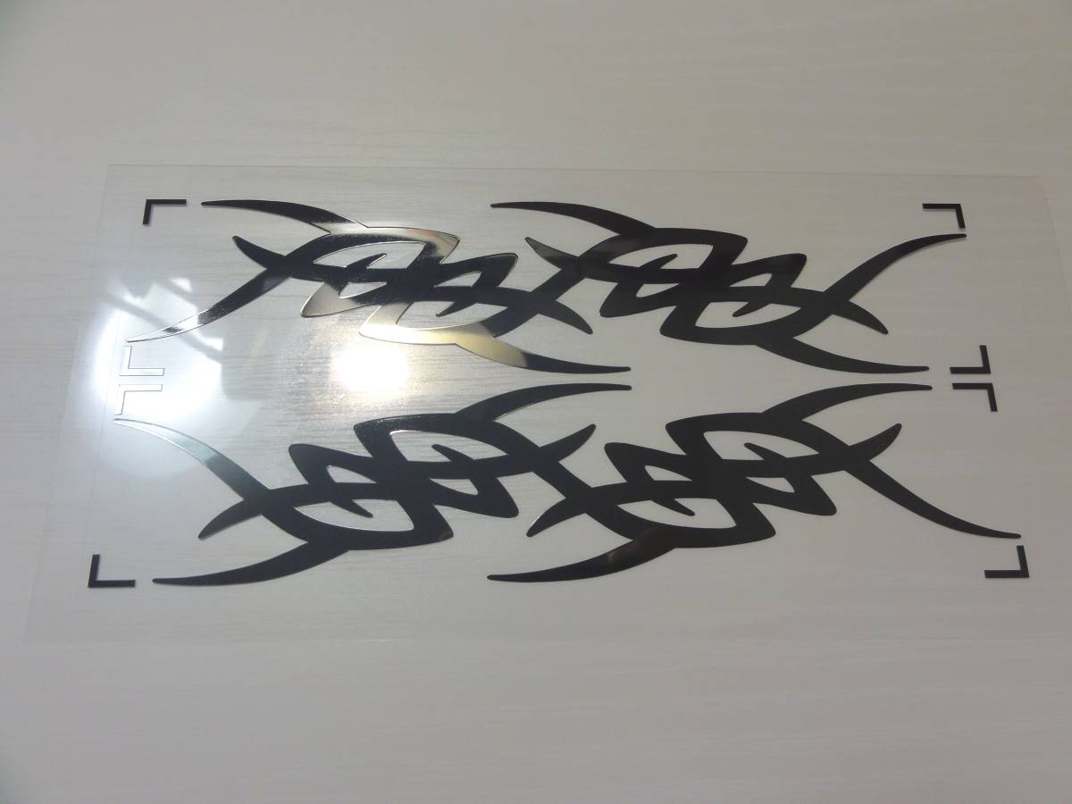 カッティングタイプの鏡面トライバルステッカーです。風雨はもちろん紫外線・海水にも強いステッカーで、屋外で5年の耐久性があります。(http://www.be-sticker.com/では他のステッカーもご覧いただけます)