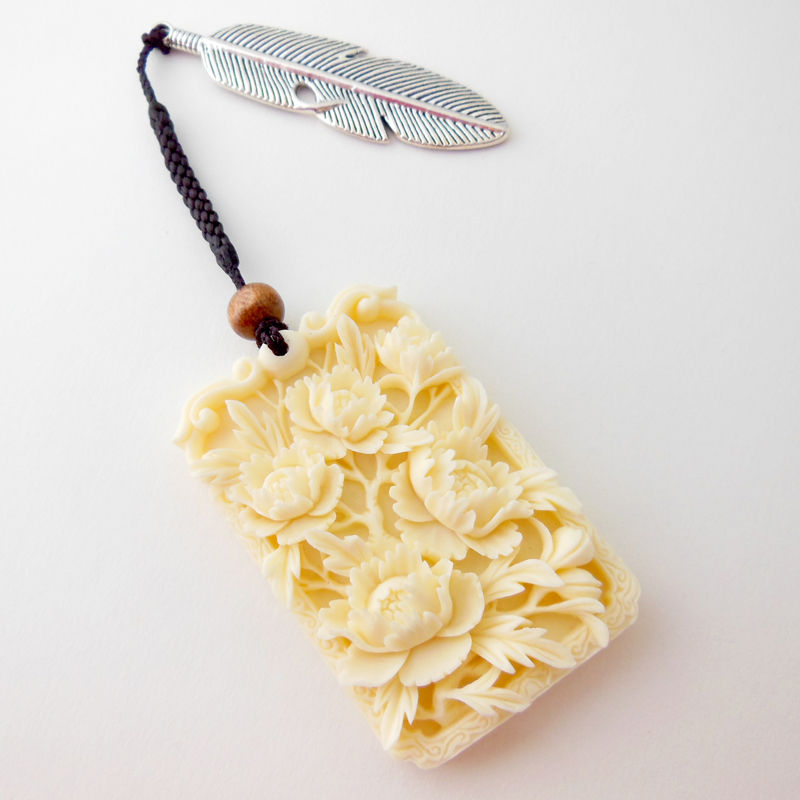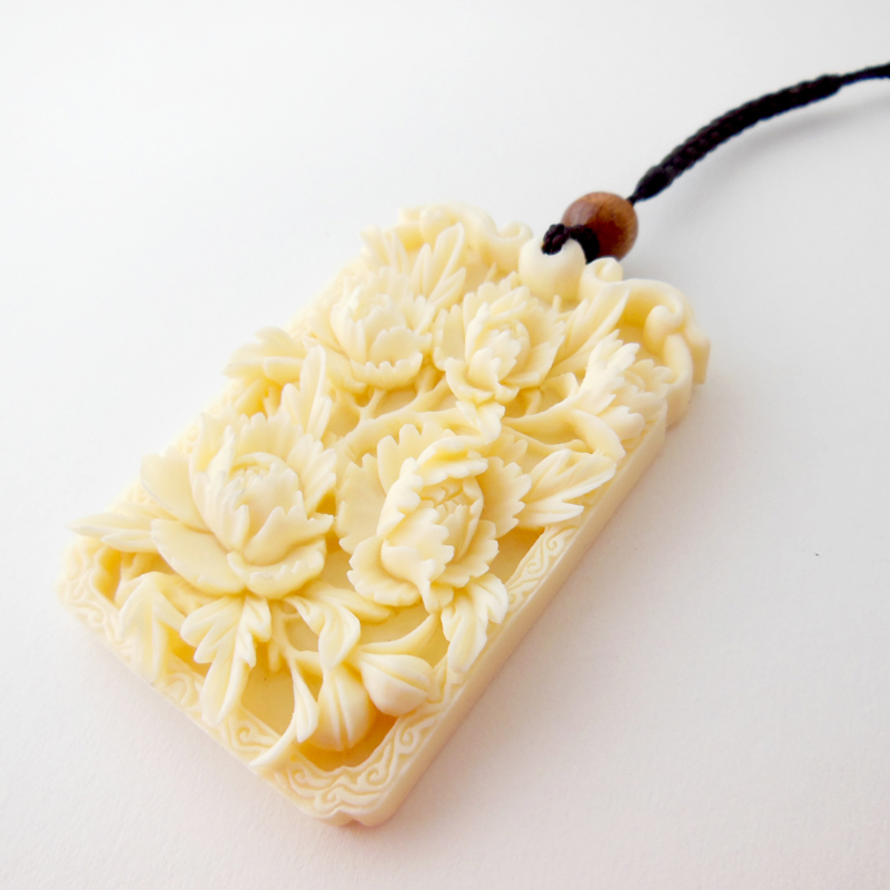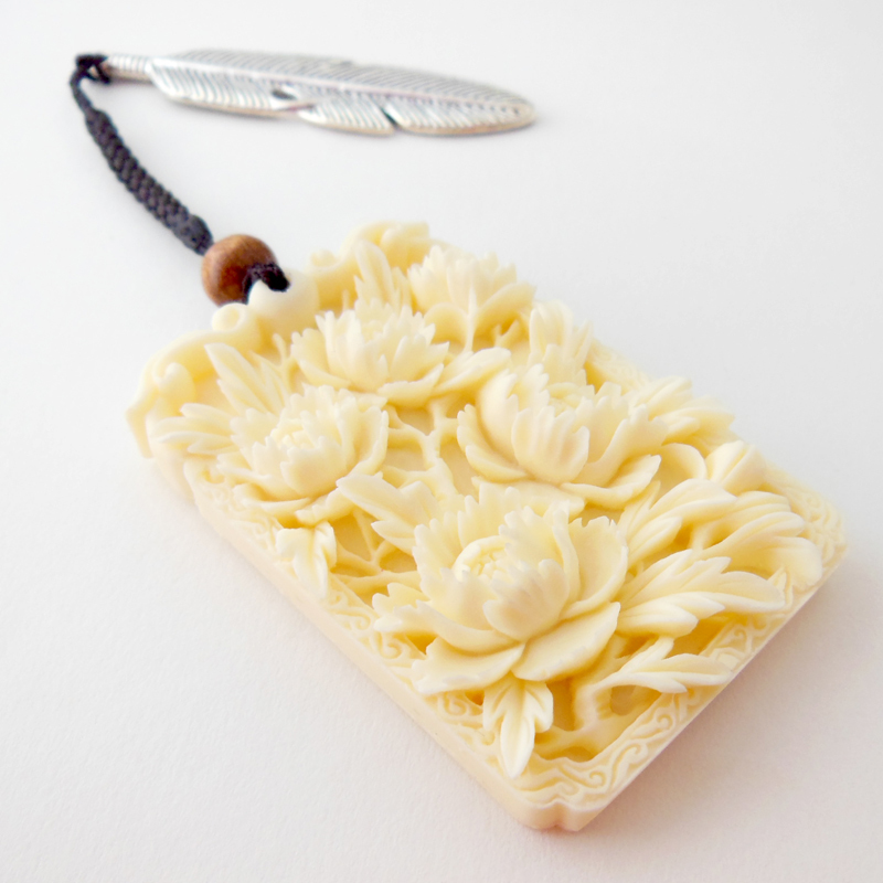 シャコ貝を機械彫りした、美しい花々の帯飾りです♪