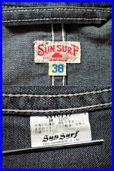 送料無料でお送りいたします。 coverall/カバーオール カバーオールとは本来、シャツジャケット型のアウターの総称。 日本のファッションシーンではとりわけ、 ジャケット丈のワークウエアのことを指します。 もともと作業用として使われていたため、 タフな生地で仕立てられているものがほとんど。 ゆとりあるシルエットに多くのポケットが付いたその見た目から、 男らしい印象を醸し出せます。 カラー:インディゴ サイズ:38(日本規格サイズ M相当) 【実寸】 着丈 70 袖丈 60 肩幅 46 身幅 55 (当方素人採寸による実測のため、多少の誤差があるかと思います。ご容赦下さい) ■ランク:C ■備考 ※古着カバーオールとして程よいUSED感で着やすいです。 ※通常使用における洗濯による色褪せ感ありで古着としての雰囲気よいです。 ※左ポケットにピンホールありです(画像あり)。 ※他には特に目立つ汚れやダメージはなく状態はまずまずです。 ※素材は綿100%、生地はシャンブレー地です。 ※フロント及び袖口のボタンは木製(恐らく竹製)のボタンです。 ※東洋エンタープライズ㈱の正規品です。 ※アメカジ定番アイテムですので流行にとらわれず永くご愛用いただけます。 ※完璧なお品をお求めの方、また中古品にご理解のない神経質な方におきましては、 恐れ入りますがご入札をお控え頂けますようお願い申し上げます。 -------------------------------------------- N:新品 S:未使用or新品同様のお品 A:コンディション良好な美品 B:使用感の有るまずまず良好なお品 C:全体的に使用感の有るお品 D:状態が悪く強い使用感の有るお品 J:ジャンク品or難有り品 アロハシャツの黄金時代とされる1930~50年代にかけて作られた 「ヴィンテージ」と呼ばれる貴重なアロハシャツを生地からプリント、 各部のディテールまで妥協なく再現し、現代に蘇らせているブランドである。 サンサーフの歴史は深く、時をさかのぼること1950年代。 ハワイの発展に呼応するかのようにアロハシャツも最盛期を迎えていたが、 ハワイには捺染の設備が無かったことからプリント生地は アメリカ本土もしくは日本へと発注されていた。 当時、輸出・輸入業を手掛けていた港商商会(東洋エンタープライズ社の前身)は スカジャンをはじめアロハシャツやボーリングシャツなどを米軍ベースへ納入。 アロハシャツに関しては「ファッションマート」 というブランドラベルを付け作製していた。 現在ヴィンテージとして扱われているアロハシャツを 実に60年前、実際にハワイへ輸出していたのである。 その後、港商商会はベトナム戦争の終結とともに 「東洋エンタープライズ」と名を変え、日本国内向けの商品をスタート。 そして1970年代、アロハシャツブランド「サンサーフ」を誕生させた。 今や希少で入手困難なヴィンテージアロハシャツ。 その魅力を時とともに風化させず、より多くの人々に楽しんでいただけるよう、 サンサーフは数多くの名作を現代に蘇らせ続けている。 | |