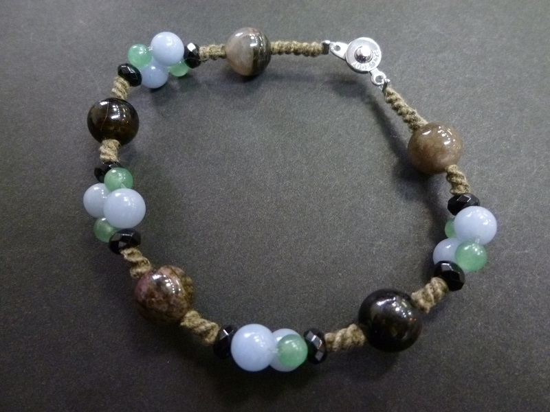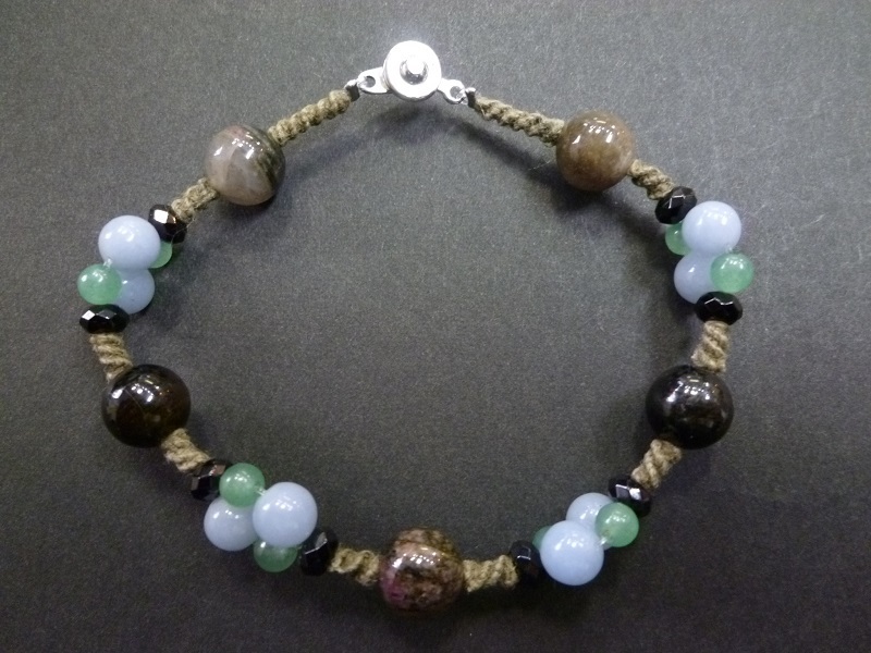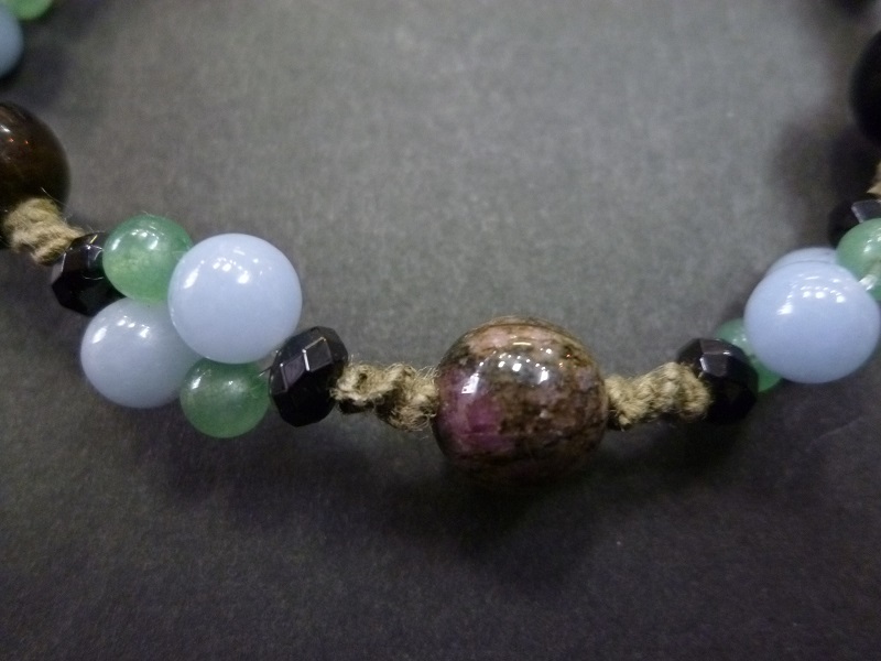 トルマリン エンジェライト アベンチュリン スピネル 手編みブレスレット
