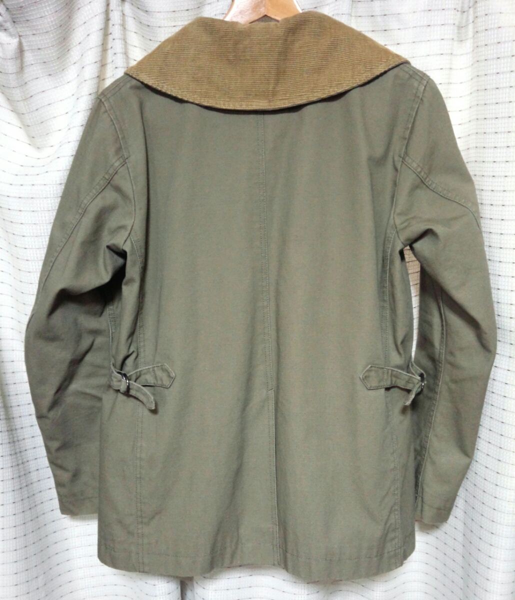 着丈= 約68cm(バック 襟の付け根~)、身幅= 約49cm(脇)、肩幅= 約43cm、袖丈= 約62cm(肩先~袖先)