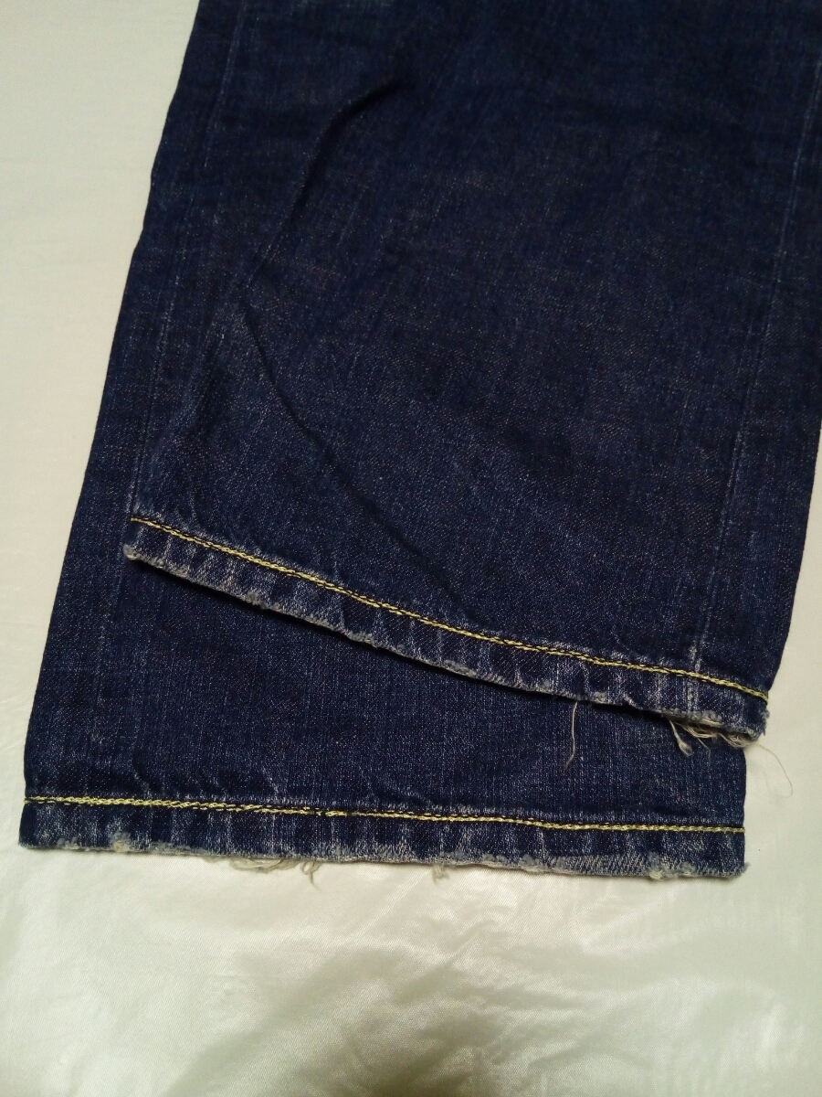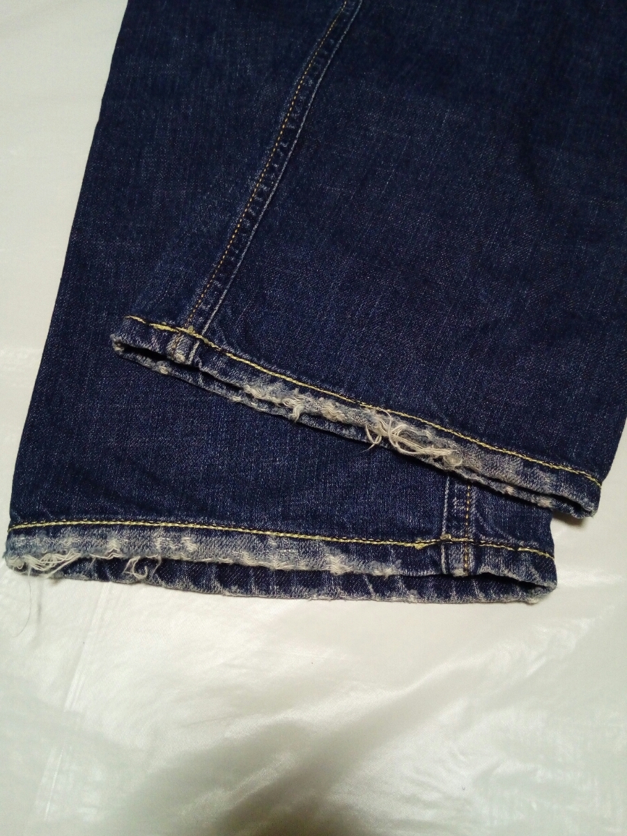 裾の後ろ側にUSEDダメージ加工によるダメージか自然に出来たダメージかはわかりかねますがダメージあります。