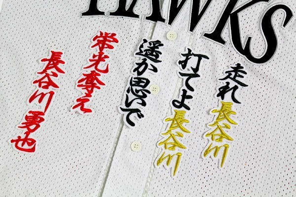 送料無料 長谷川 応援歌 行黒白 刺繍 ワッペン ソフトバンク ホークス 応援 ユニフォームに